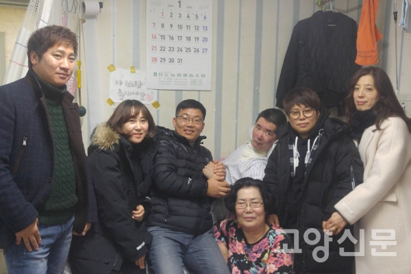 [고양신문] 무술년 첫 번째 토요일이었던 지난 5일 오후, 덕양중학교 20기 동창생들이 능곡 힐링병원에 입원해있는 벗 민병주(43세)씨를 찾았다. 병실로 친구들이 들어서자 민씨는 왼손을 뻗쳐 끌어안으며 “어~ 어!” 반가운 외마디 소리를 냈다. 눈에 눈물이 그렁해진 듯하다.