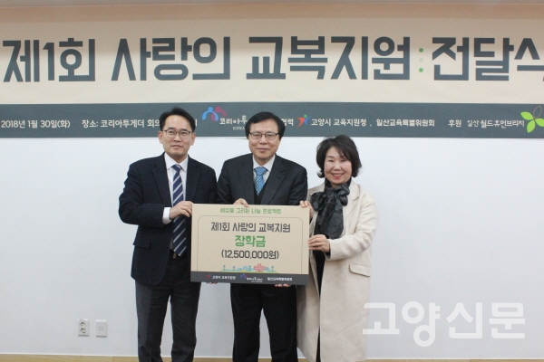 (사)코리아투게더(대표이사 박동찬, 일산광림교회 담임목사)가 주최한 교복지원 행사는 ‘세상을 그리는 나눔 프로젝트’라는 모토 아래 고양교육지원청(교육장 심광섭)과 일산교육특별위원회(회장 김덕심)의 협력과 일산월드휴먼브리지 후원으로 진행됐다.