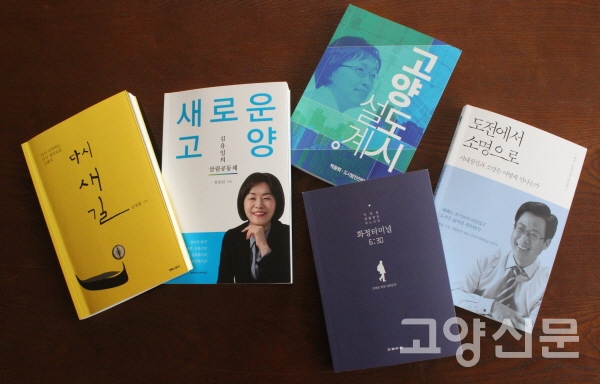 6월로 다가온 지방선거를 앞두고 고양시장 자리를 본인에게 맡겨달라는 이들이 윤곽을 드러냈다. 여당인 더불어민주당만 봐도 최성 현 시장을 포함해 김영환·김유임·이재준(가나다 순. 순서에 민감해하지 마시기를) 도의원과 박윤희 전 시의회의장까지 다섯 명이 출사표를 던졌다. 당연한 수순처럼 하나같이 책 한 권씩을 고양시민 앞에 상재하고 차례차례 출판기념회도 치렀다. 그러다보니 신문사 사무실에도 이들의 책이 무심히 나뒹군다. 얌전히 서가 한켠에 꽂아놓을까 하다가 문득 궁금했다. 무슨 이야기가 쓰여 있을까.