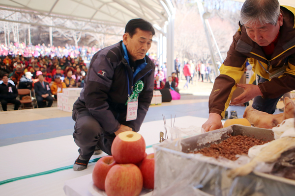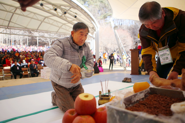 [고양신문] 만물이 겨울잠에서 깨어난다는 경칩인 6일, 벽제농협(조합장 이승엽) 산악회 시산제가 회원 1000여 명과 지역 시·도·국회의원 양평농협 조합장 등이 참석한 가운데 경기도 양평 용문산에 있었다. 아침 일찍 지역별로 출발한 23대의 산악회 버스는 오전 9시30분경 용문산 공연장에 도착했다. 시산제에 앞서 지영숙 고봉동부녀회 동회장과 김은숙 · 이순화 산악회원의 노래공연이 분위기를 이끌었다. 오전 10시 시작된 시산제는 벽제농협 발전에 공로가 큰 조합원과 관계자 등에 감사패와 공로패를 전달하는 것으로 이어졌으며, 신임 임원들의 인사와 내빈들의 인사말이 있었다. 또한 정찬운 산악회 부회장의 ‘산악인의 선서’와 이승엽 조합장의 초헌례, 이성종 산악대장의 독축, 김흥석 산악회장의 아헌례, 산악회 임원들의 종헌례, 내빈들의 헌작례가 있었다.