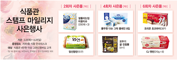 행사 기간 중 4만원이상 구매시 스탬프 1개를 획득하게 되고 2,4,6회차 누적 시에는 풍성한 사은품을 증정한다. 스탬프 쿠폰은 지하1층 식품 안내데스크에 있다.