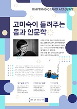 오랫동안 몸을 주제로 인문학을 연구하고 있는 고전평론가 고미숙 작가의 특강이다. 몸이야말로 ‘삶의 구체적인 현상이자 유일한 리얼리티’라 여기는 고 작가는 우리 사회 제반 문제를 몸과 결부시켜 바라본다. 고 작가의 주요 저서로는 『동의보감, 몸과 우주 그리고 삶의 비전을 찾아서』, 『열하일기, 웃음과 역설의 유쾌한 시공간』 등이 있다. 27일 오후 7시 한양문고 주엽점 ‘한강홀’ 031-919-6144