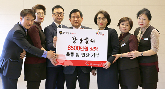 [고양신문] ㈜전한(대표 노상환)의 한식문화브랜드인 ‘강강술래’가 3일 오후 경기사회복지공동모금회 북부사업본부(회장 이순선)에게 6천 5백만원(판매가 1억2천만원) 상당의 음식을 기부했다.