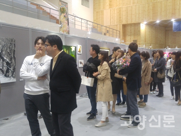 [고양신문] 봄꽃들이 너도나도 앞다퉈 피어나기 시작한 지난 3일, 일산서구에 자리한 고양예술고등학교(교장 송용운) 윤송관에서 제12회 고양예술고등학교 미술과 전시회가 열렸다. 미술과 82명 학생들이 개인작품으로 제작한 서양화 32점, 한국화 24점, 디자인 15점, 조소 11점과 소묘작품, 그리고 10명이 한 조가 돼 만든 단체작 7작품 등 총 171점이 전시됐다.