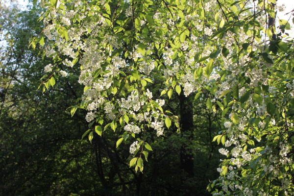 세심히 살펴보면 서어나무뿐 아니라 다양한 나무들이 경쟁하듯 자라고 있는 모습을 볼 수 있다. 앞서는 이가 있으면 뒤따르는 이가 있듯, 나무들이 잎싹을 내는 시기도 각각 다르다. 벚꽃이나 목련, 산수유는 잎보다 꽃이 먼저 피지만, 가장 먼저 초록색 잎을 틔우는 나무는 바로 귀룽나무다. 커다란 수형에 비해 작고 소박한 흰색의 꽃망울을 나무 전체에 매달고 있다.
