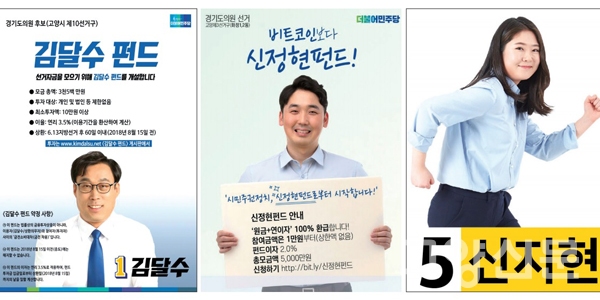 지난 1일 김달수 민주당 도의원 후보의 SNS에 올라온 글이다. 김 후보는 이번 선거를 앞두고 선거비용 마련을 위한 선거펀드인 ‘김달수펀드’를 개설했다. 김 후보는 “수도권에 출마하는 후보들이 보통 5000만원의 선거비용을 쓰다 보니 돈 있는 사람이 아니면 선거에 나서기 어려운 것이 현실”이라며 “어떻게 해야 할까 고민하던 중 선거펀드를 통해 비용을 마련해보자는 아이디어로 시작하게 됐다”고 펀드개설 이유를 밝혔다.