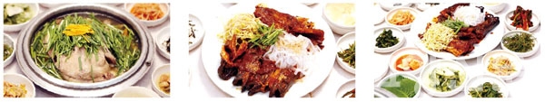 주요메뉴 한방진흙구이 50000원 가시오가피오리백숙전골 60000원