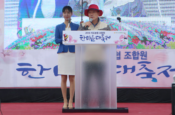 류지영 MC의 사회로 지도농협 최고 장수 조합원에게 장순복 조합장이 장수상을 전달하며 고마움을 전하고 기념사진을 함께 찍었다. 본격적인 한마음대축제는 레크리에이션을 시작으로 조합원과 한마음이 되는 박터뜨리기, 공굴리기 등의 게임이 진행되며 조합원들의 단결되고 화합하는 마음을 고스란히 보여줬다. 이어 하지혜 사회자가 전체 분위기를 이끌었고, 김정연 사회자를 중심으로 여러 공연들이 이어졌다. 중간중간에는 경품 추첨이 있었으며 상품으로는 쌀과, TV, 청소기, 육류세트 등이 전달됐다. 한편 지도농협 관내 각 마을을 하나의 팀으로 만들어 화합팀과 단합팀, 소통팀, 협동팀 등 4개 팀이 구성돼 대축제를 즐기며 하나가 됐다.