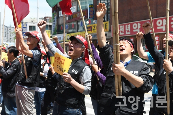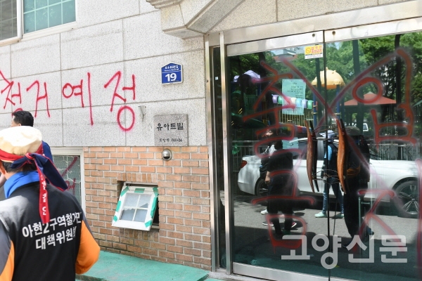 ‘재개발 반대’, ‘주민생존권 보장’ 등의 손팻말을 든 주민들은 능곡초등학교에서 출발해 능곡1구역 사업지역 일대를 행진하며 반대목소리를 높였다. 이강호 능곡1구역 총무는 “아직 남아있는 주민들이 많음에도 불구하고 ‘철거예정’ 딱지를 붙여가며 지역 내에 위화감을 조성하고 있다”며 “고양시와 조합측은 막가파식 개발을 철회하고 주민생존권을 보장해야 한다”고 주장했다.