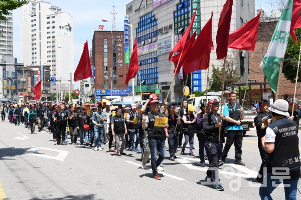 행진을 마친 뒤 조합사무실 앞에서 마무리 집회를 가진 전철연 측은 “오늘 집회는 능곡1구역 재개발사업을 막기 위한 투쟁선포식”이라며 “사업이 강행될 경우 서울경기지역 재개발 반대 주민들과 함께 연대해서 싸우겠다”는 뜻을 밝혔다.