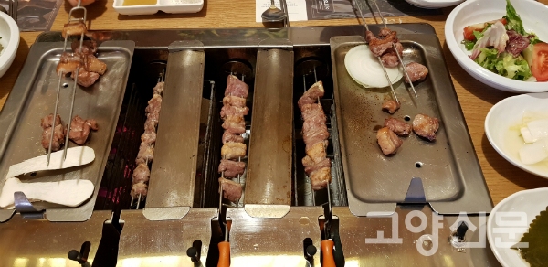 주문과 동시에 러시아 전통 꼬치구이인 사슬리처럼 숯불 속에서 빙글빙글 회전하면서 구워진다. 고객들이 직접 구워먹는 재미가 쏠쏠한 생오리구이는 복사열이어서 연기가 전혀 나지 않고, 기름도 튀기지 않아서 앞치마를 굳이 안 해도 된다.