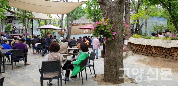 싱그런 녹음과 멋스러운 한옥에서 먹는 즐거움과 자연 속 라이브 공연을 즐길 수 있다