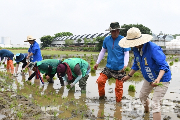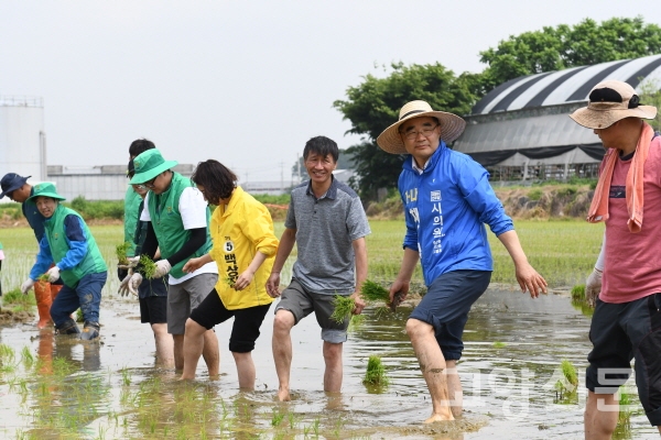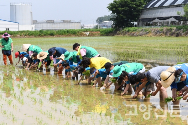 참석자들은 청아공원 앞에서 행사취지를 알리고 서로를 소개하는 간단한 행사를 가진 뒤 맞은편에 위치한 논에서 함께 손모내기를 진행했다. 권명애 고양시민회 대표는 직접 북을 치고 장단에 맞춰 진도아리랑을 노래하며 모내기 흥을 더욱 돋웠다. 모내기를 마친 참가자들은 새참으로 논두렁비빔밥을 함께 나눠먹으며 화합의 시간을 가졌다. 4년째 이어지고 있는 고양시민평화대동제는 지역안에서 해묵은 이념을 벗어던지고 공동체적 지역운동을 다짐하는 취지로 이어져왔으며 올해 행사에는 고양새마을회, 고양시민회, 고양시민사회연대회의, 통일나무, 고양YMCA, 통일을이루는사람들 등 고양시 진보보수단체 다수가 함께 준비했다.