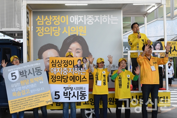 박시동 후보는 “3선 도전에 성공해서 이곳 고양시에 진보정치의 뿌리가 튼튼하다는 것을 보여주고 싶다”며 “꼭 당선해 시의회와 고양시를 개혁할 수 있도록 하겠다”는 각오를 밝혔다. 나 선거구는 이번 선거를 앞두고 3인선거구에서 2인선거구로 변경됐다. 거대양당과 맞서야 하는 부담감이 클 수밖에 없는 상황. 하지만 박 후보는 “이 지역의 유일한 현역의원이기 때문에 지역살림에 대해 누구보다 잘 알고 있다”고 했으며 “또한 유일한 토박이 출신이자 가장 젊은 정치인이기 때문에 지역주민들의 복지와 행복을 위해 가장 잘 일할 수 있다”며 자신감을 드러냈다.