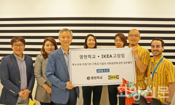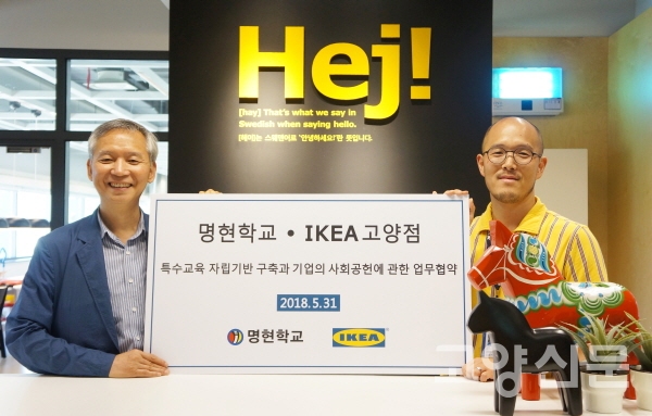[고양신문] 고양시 덕양구 삼송동에 자리한 특수학교인 명현학교(교장 김희태)와 국내 최대 가구매장 이케아(IKEA) 고양점이 지난달 31일 덕양구 원흥동 이케아 사무실에서 특수교육 자립기반 구축 지원과 기업의 사회공헌에 관한 협약식을 체결했다.