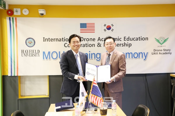 이번 협약으로 드론이야기 무인항공교육원에서 드론 전문과정을 이수한 수강생들은 헤이필드대학교의 공동수료증을 받을 수 있게 됐다. 향후에는 헤이필드 대학 한국 분교 설립과 미국 본교에 드론학과를 개설해 전문학사, 학사, 석·박사 과정도 개설한다는 계획이다.