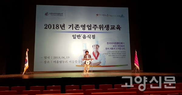 [고양신문] (사)한국외식업중앙회 경기도지회 고양시일산구지부(지부장 이광길) ‘2018 기존영업주 위생교육’이 지난 19일 고양어울림누리에서 열렸다.
