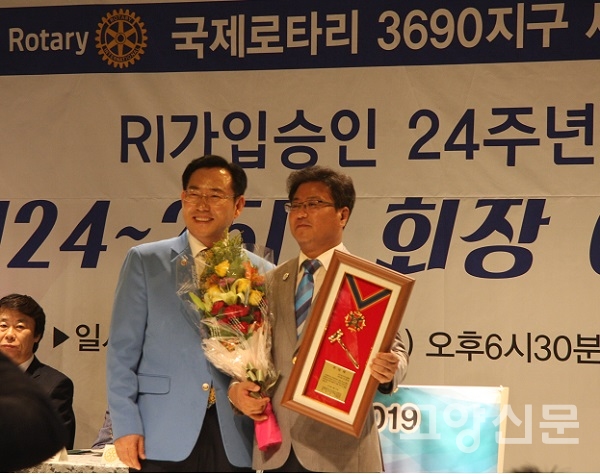한국로타리 총재를 지낸 임효순 전 의장은 “수년간 같은 곳에 지속적인 지원을 하는 등 지금까지 훌륭하게 클럽활동을 잘 하고 있는 모든 회원들에게 감사를 전한다”며 “로타리의 봉사는 상대편의 입장에 서서 내가 받은 행복을 어려운 처지에 있는 사람에게 나눠주는 기쁨을 얻는 것”이라며 격려사를 했다.
