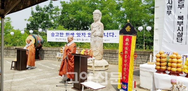 보산 스님은 봉행사에서 “고양시 지역에는 한국전쟁 때 죽은 전사자가 많다고 알려져 있다. 목이 없는 영혼, 다리가 없는 영혼, 팔이 없는 영혼 등 수많은 영혼들이 떠돈다는 이야기를 듣고 이분들을 위해 매년 천도제를 드리고 있다”며 “호국 영령들이 천도를 받고 극락으로 왕생해 부디 편히 쉬시고, 호국의 별이 되어 이 땅을 지켜 달라”고 축원했다.