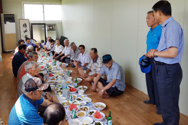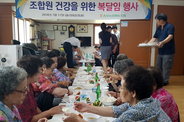 [고양신문] 송포농협(조합장 이재영)이 지역민들의 건강한 여름나기를 기원하며 관내 20여 마을회관에 생닭, 수박, 음료 등을 지원했다. 17일 일산서구 가좌동 율리 마을회관에서는 송포농협 조합원과 동네 어르신 등 50여 명이 삼계탕으로 복달임을 하며 초복 더위를 멀리 보냈다. 송포농협은 이날 참석자들에게 7월 30일부터 8월 1일까지 3일간 있을 벼 병해충 공동방제에 대해서도 자세히 설명했다. 아울러 올해 처음 실시하는 드론(무인비행기)방제가 농업인들에게 큰 변화를 가져 올 수 있는 만큼 관심을 갖고 참여해주길 당부했다.