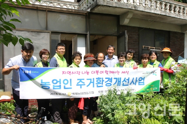 [고양신문] 고양시 벽제농협(조합장 이승엽) 임직원과 사랑나눔 봉사단원 10명이 지난 17일 관내 다문화가정을 방문해 주거환경개선사업을 진행했다. 폭염이 이어지는 날씨에도 불구하고 봉사단원들은 청소는 물론 씽크대와 장판 교체 작업 등을 하며 구슬땀을 흘렸다.