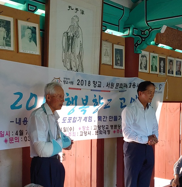 고유례에 이어 명륜당 마루에서 간담회를 가졌다. 이영찬 전교는 “이재준 시장은 323번째로 고양에 임명된 지방관”이라며 “1년에 300여 차례 전통문화를 교육하는 고양향교가 앞으로 더 발전적인 모습을 보일 수 있도록 많은 지원을 부탁드린다”고 말했다. 지용원 고양동 복지관장은 “고양향교에 문화해설사가 배치되어 주말만이라도 향교 문을 열 수 있게 해달라”고 건의했다.