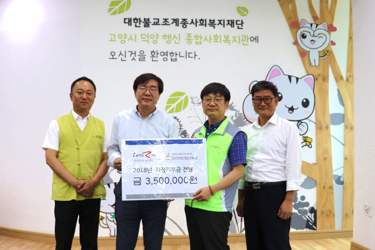 [고양신문] 대한불교조계종사회복지재단이 위탁 운영하는 고양시덕양행신종합사회복지관(관장 강영규)에서는 지난 7월 27일 한국마사회 일산문화공감센터(센터장 박진우)와 기부금 전달식을 진행했다. 이날 한국마사회 일산문화공감센터가 전달한 기부금은 총 350만원으로 덕양행신종합복지관이 지역 내 여성 어르신을 대상으로 문화 여가생활을 즐길 수 있는 공예프로그램으로 진행할 예정이다.