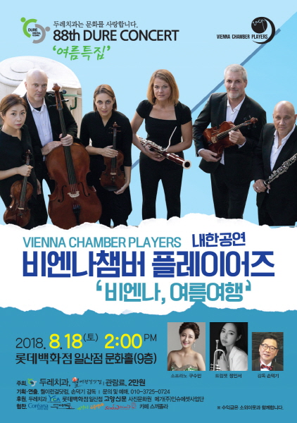 수준 높은 공연과 따뜻한 만남이 있는 두레콘서트를 공동주최하는 황선범 두레콘서트 대표(두레치과 원장)와 손덕기 감독은 “비엔나에서 날아온 클래식 마스터들의 열정적인 연주가 연일 이어지는 무더위에 지친 몸과 마음에 시원한 생기를 불어넣어 줄 것”이라며 초청 인사를 건넸다.