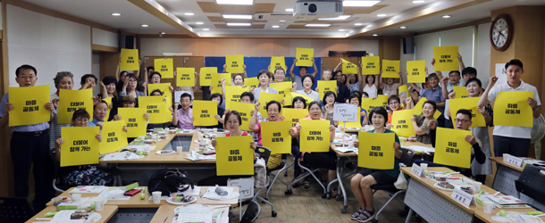 또한 풍산동주민자치회와 그루운영위원회, 고양시자치공동체지원센터, 고양시자원봉사센터, 풍동 애니골 상가번영회 등이 참석해 협약식을 갖고 토론회에 동참했다. 최효숙 회장과 권세진 센터장이 먼저 협약식을 가진 후 민건동 센터장의 주민토론회 개요설명, 주민토론회가 이어졌다. 토론회에서는 그루운영위원회와 상가가맹점, 희망일자리, 재능기부, 그루회원1, 2 등 여섯 개 영역으로 나뉘어 각 테이블에서 새로운 아이디어를 내며 풍산동 특유의 토론문화를 만들었고 테이블별 집단토론과 발표가 있었다. 토론회를 안정적으로 이끌어가는 퍼실리테이터도 테이블마다 참여해 마을활성화에 대한 옳고 틀림이 아닌 풍산동만의 성장을 위한 토론을 이끌어 나갔다.