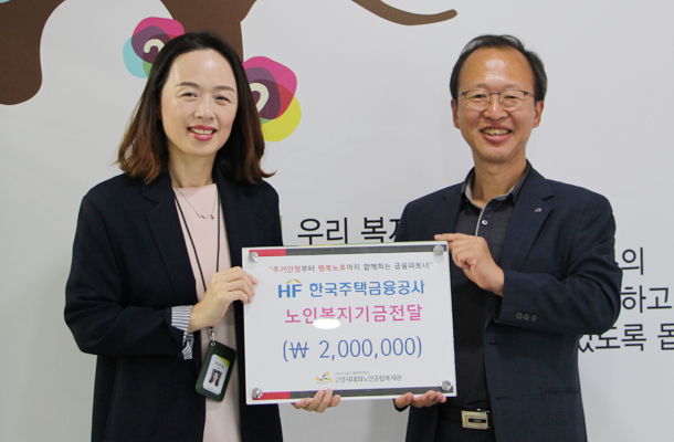 [고양신문] 한국주택금융공사 서울중부지사(지사장 오택균)는 20일 대화노인종합복지관(관장 최윤정)에 노인복지 기부금 200만원을 전달했다. 양측은 2015년부터 노인복지 증진과 나눔 문화 확산을 위한 상호협약에 의해 노인복지 기부금 전달뿐만 아니라 노후금융설계를 위한 금융 강좌와 주택연금 정보제공 등 다양한 복지사업을 함께 진행하고 있다.