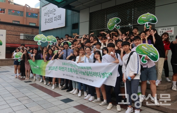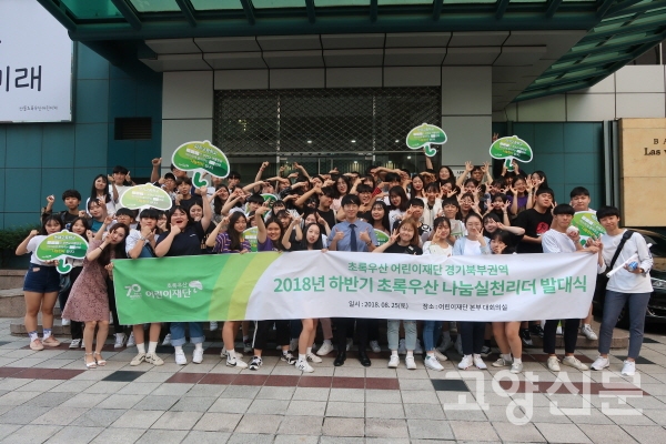 [고양신문] 초록우산어린이재단 경기북부지역본부(본부장 문의형)는 지난 25일 서울시 무교동에 위치한 어린이재단 빌딩에서 나눔실천리더 발대식을 진행했다. 발대식은 경기북부권역 9개 고등학교(가좌고, 동패고, 마석고, 백마고, 일산고, 의정부여자고, 장기고, 파주고, 판곡고)가 참여했고, 참가자들은 고등학생들로부터 시작되는 나눔문화를 만들기 위한 교육을 들었다.