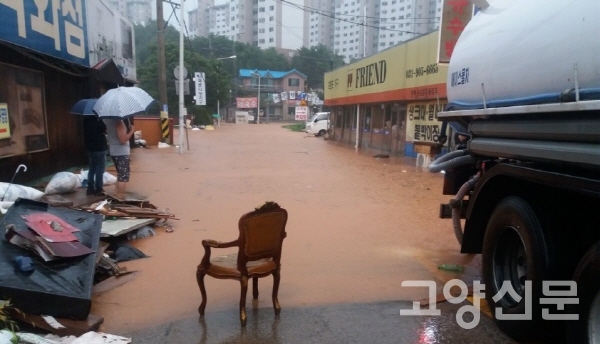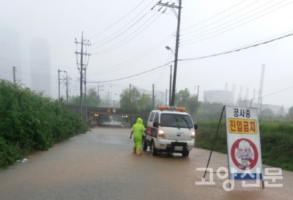 [고양신문] 고양시에 이틀 동안 기록적인 폭우가 쏟아졌다. 지난 28일과 29일 사이 고양시 전역에 400mm가 넘는 장대비가 거세게 쏟아졌다. 특히 고양시청이 자리하고 있는 덕양구 주교동 일대에는 519mm의 비가 내려 전국에서 가장 많은 강수량을 기록했다.