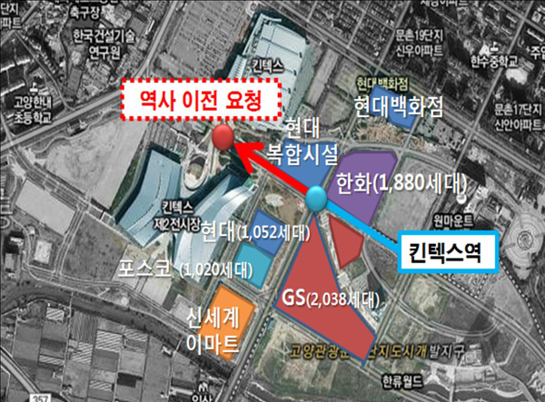 먼저 역사 위치를 기존 사거리에서 전시장 사이로 옮기자는 의견을 살펴보면, ‘킨텍스를 중심으로 고양시 마이스산업을 성장’시키려는 목적이 가장 크다. 이번 이전촉구 결의안에도 “기존 위치는 킨텍스와 GTX를 연계하는 내용은 찾을 수 없고, 킨텍스로부터 무려 500m 떨어진 아파트 최중심에 역사를 계획해 ‘킨텍스’와 ‘코엑스’를 잇는 GTX의 최초 사업취지를 무색케 하고 있다”며 “미래 신성장 동력사업의 중심인 킨텍스가 활성화되려면 역사가 킨텍스 사이에 와야 한다”고 밝히고 있다.