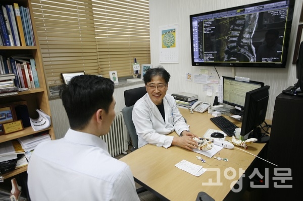 “한 가지 치료법으로 모든 종류의 디스크를 다 해결할 수는 없어요. 상황에 맞게 맞춤식으로 다양하게 치료를 해야지 일괄적으로 할 수는 없습니다. 환자들의 디스크 상태와 모양, 신경이 눌리는 정도에 따라 과학적인 사실과 자료에 근거해 다양한 치료법을 설명해줍니다. 선택은 환자 본인의 몫이죠.”