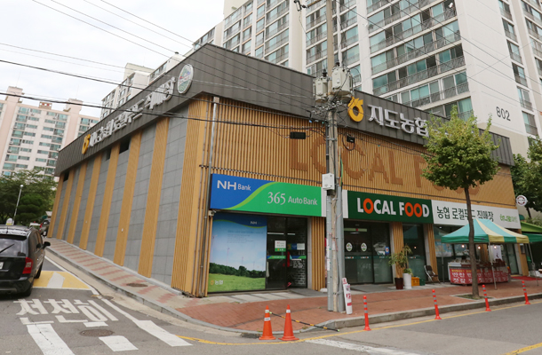 추석을 앞두고 배, 사과 등의 과일세 트와 생필품세트, 햅쌀 등 기본 품목에 충실하며 고객을 맞을 준비를 했다. 5만원 이상 구매하면 집앞까지 정성스럽게 배달한다. 화정점과 무원점 모두 직매 장과 금융점포를 한 곳에서 이용할 수있다.