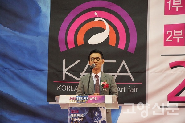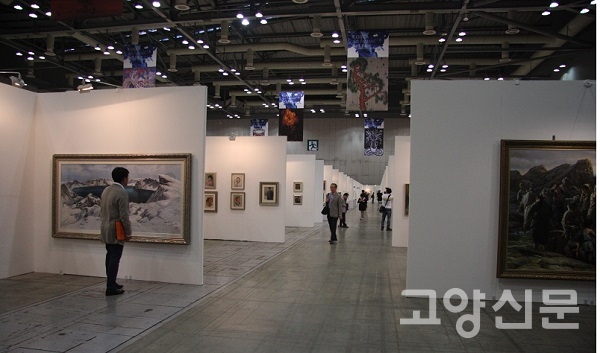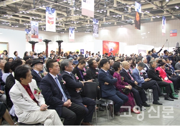[고양신문] 풍성한 결실의 계절, 일산 킨텍스에서 사단법인 한국미술협회(이사장 이범헌)와 (주)킨텍스가 공동주최하는 국제적인 미술전이 열렸다. 9월 28일부터 7일까지 진행되는 ‘2018 대한민국 미술축전 KAFA 국제 아트페어’는 회화, 조각, 공예, 조소, 서예 등 미술의 모든 분야를 아우른다. 국내외의 미술가와 대중예술 작가 및 유명인사 등 2000여명이 참여하고 1만5000여점의 작품이 출품되는 대형 전시다.
