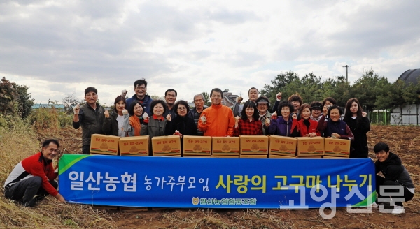 [고양신문] 일산농협(조합장 김진의) 여성 봉사단체인 농가주부모임(회장 유미선)은 지난 10일 소외된 이웃에게 사랑을 전하기 위한 '사랑의 고구마 나누기' 행사를 가졌다.