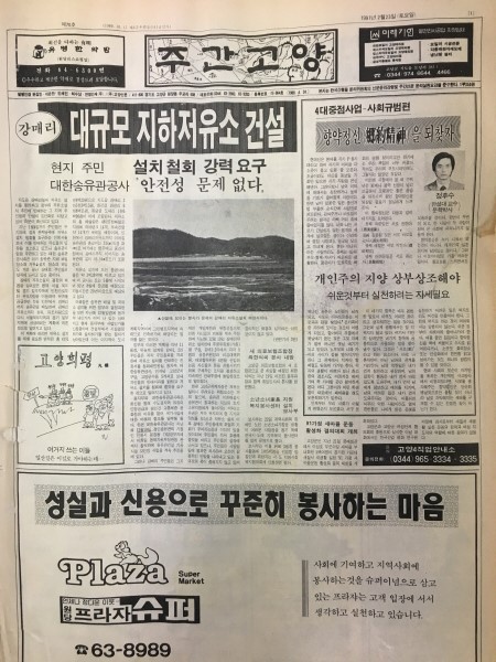 덕양구 강매동에 위치한 대한송유관공사 경인지사 고양저유소는 1992년 12월에 문을 열었다. 1991년 2월 23일자로 발간된 고양신문 70호 ‘강매리 대규모 지하저유소 건설’기사에 따르면 당시 저유소건설계획에 대해 강매리 주민들의 강한 반대가 있었던 것으로 확인할 수 있다. 기사에는 “지난 1월 4일까지 주민들이 두 차례에 걸쳐 관계 당국에 저유소 설치 철회를 요구하는 진정서를 보내 이를 반대하는 자신들의 입장을 호소하고 있으나 송유관 사업을 주관하고 있는 대한송유관공사측은 이미 송유관 지하매설장소의 매입도 거의 끝난 상태로 주민들의 설득에 나서고 있는 중”이라고 기록했다.