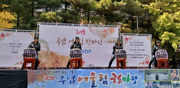주엽어울림한마당과 나눔장터가 지난 13일(토) 오전 11시부터 일산서구 주엽동에 위치한 강선공원에서 있었다. 주엽1·2동 주민자치위원회와 행정복지센터가 함께 마련한 이번 축제에는 EM발효액 체험과 떡메치기, 요리체험 등의 체험프로그램과 다트게임, 농구게임, 치매조기검진등의 무대행사가 마련됐다. 또한 꽈배기와 국밥, 두부김치, 막걸리, 우동 등을 판매하는 먹거리장터도 열렸다.