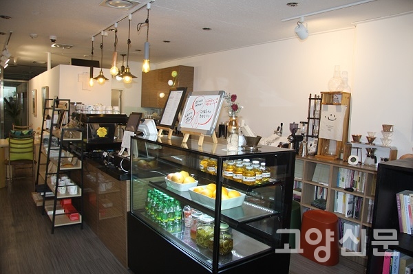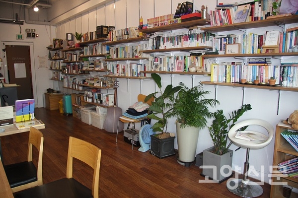 카페 내부는 기증받은 책과 오 대표 개인이 구입한 책으로 꾸몄다. 처음부터 이곳을 책 읽는 공간과 모임 동아리 장소로 활용하고 싶었다. 지금은 매장에서 책도 판매하고 있지만, 김영사 출판사 한 곳 책만 취급한다. 책 판매를 하게 되면 책 읽기 모임을 하면서 책을 선정할 때 영향을 받는 것 같아서다. 커피 원두는 조금 고가이지만 ‘함께 잘 살자’는 의미가 좋아서‘함께 커피’를 쓰고 있다. 다른 곳과 차별화된 메뉴는 맥주가 있다는 것. ‘책맥’처럼, 밤에 시를 읽을 때 한 병씩 마시며 모임을 하기에 좋다.