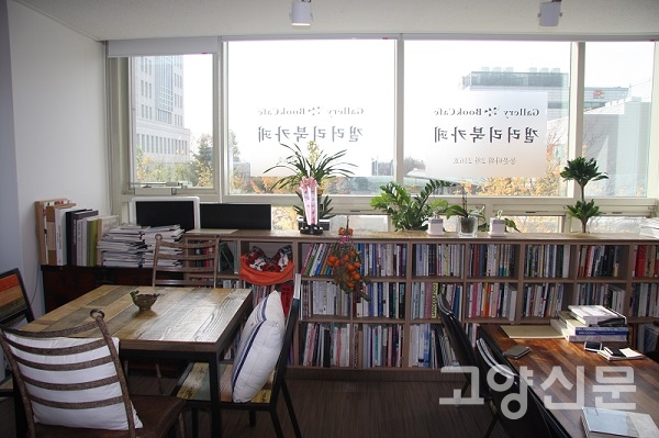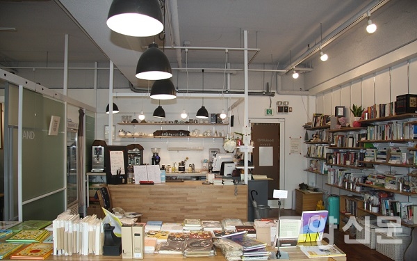 풍동에 작년 5월 오픈한 책다방 ‘북앤드’. 상가건물 2층, 눈에 잘 띄지 않는 곳에 이런 곳이 있었다니 다소 의외다. 밖에서 보기에 별 특징이 없어 보이는 공간의 문을 열고 들어서자 카페 겸 서점처럼 꾸며진 공간이 눈에 들어온다. 전면 창밖으로 회색 아파트를 뒤로하고 보이는 붉은색과 녹색의 나뭇잎들이 운치있다.