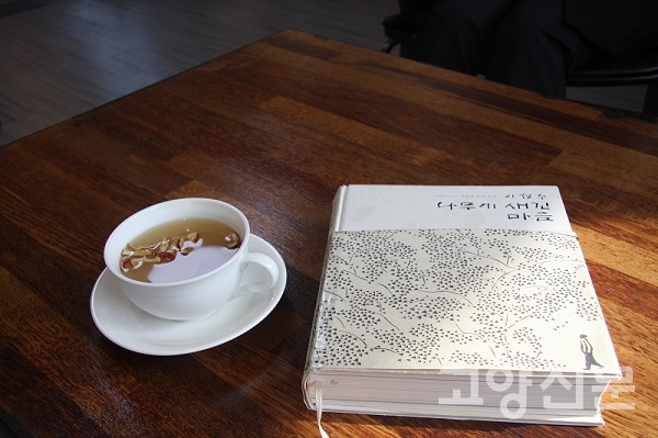 백석동에 위치한 오피스텔 건물 2층에 올 7월 오픈한 ‘나무에새긴마음’. 갤러리북카페라는 이름에 걸맞게 길게 이어진 오른쪽 벽면에 액자들이 걸려있다. ‘나무에 마음을 새기는 판화가’로 유명한 이철수 작가의 판화들이다. 반대편에 있는 이 작가의 작품으로 만든 머그컵 등 아트 상품 뿐만 아니라, 그의 작업실에 있던 것을 가져왔다는 말린 꽃도 반갑다.