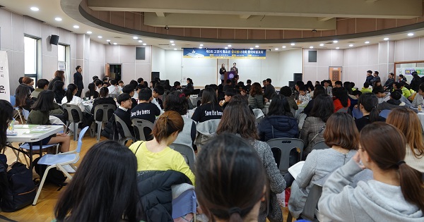 [고양신문] 청소년들이 스스로 봉사활동을 기획하고 실천하는 ‘고양시청소년창의봉사대회’ 발표회가 지난 10일 오후 2시 토당청소년수련관에서 열렸다. 고양사회창안센터 주최로 올해로 8회째를 맞은 이번 발표회에서는 총 21개 팀이 열띤 본선을 치러 세바퀴봉사단이 마중물상(경기도고양교육지원청 교육장상)을 수상했다. 세바퀴봉사단은 2013년부터 다문화 어린이들에게 인라인을 가르쳐주는 중・고생 봉사단이다.