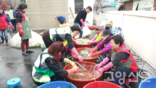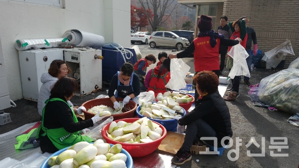 [고양신문] 성사1동(동장 조병근) 행정복지센터 주차장에서 15~16일 이틀 동안 김장김치 담그기를 진행했다.