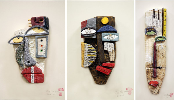 또 다른 시리즈 ‘피카소와 가면’은 우리의 전통문화인 한지와 현대미술의 거장 피카소의 큐비즘을 접목해 철사, 삼베조각, 나무 등을 붙이는 콜라주 기법으로 만들었다. 완성된 작품들은 형태와 색깔, 기법 등 모든 면에서 무척이나 대범하고 독특하다. 관람객과 미술계의 관심과 반응도 뜨거웠다.