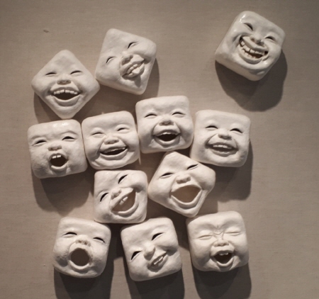 전시에 선보인 ‘108개의 표정’이라는 작품은 108개의 손바닥 만 한 사각형 얼굴 속에 희노애락애오욕의 감정을 제각각 표현한 작품이다. 들여다보고 있으면 절로 미소가 지어질 만큼 표정이 귀엽고 절묘하다. 전 작가는 하루에 하나씩 작품을 만들었는데, 그날그날의 마음의 표정이 고스란히 작품에 담겼다고 말한다.