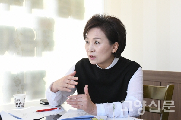 [고양신문] 최근 남북철도 연결 착공식과 GTX 착공식을 잇달아 주관한 김현미 국토부장관을 만났다. 대한민국 첫 여성 국토부 장관이라는 화제로 임기를 시작한 김현미 장관에게 이제 여성이라는 화제는 따라붙지 않는다. 강단 있는 주택정책과 과감한 남북철도 사업의 추진, 철도 대중교통정책에 대한 강력한 드라이브 등 김현미 장관은 과거 어느 국토부 장관도 보여주지 못했던 추진력을 보여줬다.