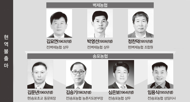 현역 조합장이 불출마를 선언한 벽제농협(조합장 이승엽)과 송포농협(조합장 이재영)은 우열을 예측하기 힘든 승부가 예상된다. 최근 숙원사업인 종합청사를 신축한 이승엽 조합장은 후배들을 위해 일선에서 물러나 고양문화원장 역할에 전념하겠다고 선언했다. 김묘연 전 상무와 박영선 전 상무, 그리고 정찬덕 조합원이 그의 뒤를 이을 적임자를 자처하고 있다.