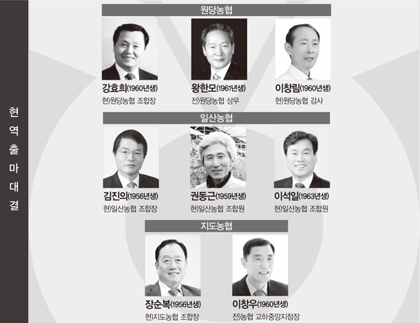 현역과 도전자가 맞붙는 원당농협(조합장 강효희), 일산농협(조합장 김진의), 지도농협(조합장 장순복)은 현역들이 모두 초선이라는 공통점이 있다. 한 지역농협 임원은 “2015년 첫 동시선거를 통해 등장한 초선 조합장들이 하나같이 구체적인 혁신과 성장정책을 제시했다”면서 “그들이 제시한 과제를 마무리할 수 있도록 한 번 더 기회를 주자는 것이 조합원들의 일반적 정서”라고 내다봤다. 그러나 또 다른 조합원은 “공정선거 분위기가 정착돼 현역 프리미엄이 그리 크지 않다”며 “지역농협 특유의 유대관계가 작용하는 만큼 얼마나 탄탄하게 바닥표를 다졌느냐에 따라 도전자들의 선전도 충분히 기대해 볼 만하다”고 전망했다.