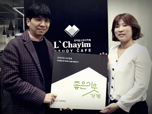 김아름 르하임 스터디카페 파주운정점 대표는 “2009년부터 굿네이버스에 후원을 하고 있었는데 좋은이웃가게 캠페인을 통해 더 많은 사람들에게 나눔을 확산할 수 있게 되어 기쁘다”고 전했다.